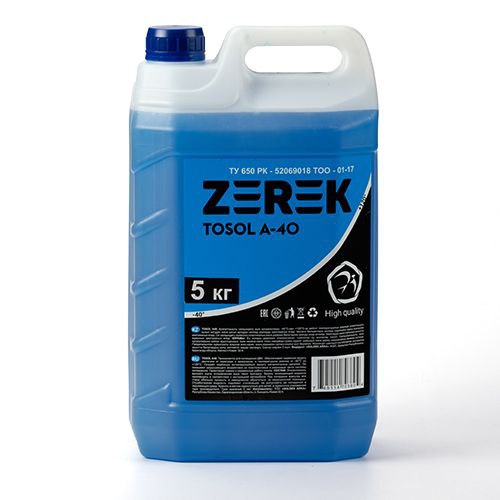 TOSOL A 40 ZEREK (синий). «Тосол» — изначально это была марка антифриза, разработанного в начале 70-х годов ХХ века в СССР. Для замедления окисления МЭГ (моноэтиленгликоля) и нейтрализации образующихся кислот и для предотвращения разрушения деталей ДВС, используются наряду с ингибиторами коррозии антикавитационные добавки. Современная формула присадок для удаления накипи от отложения солей и коррозии. Данный продукт объединил в себе лучшие качества «Тосола» и достижения современных исследований. Хорошо зарекомендовал себя в тяжелых условиях эксплуатации. .